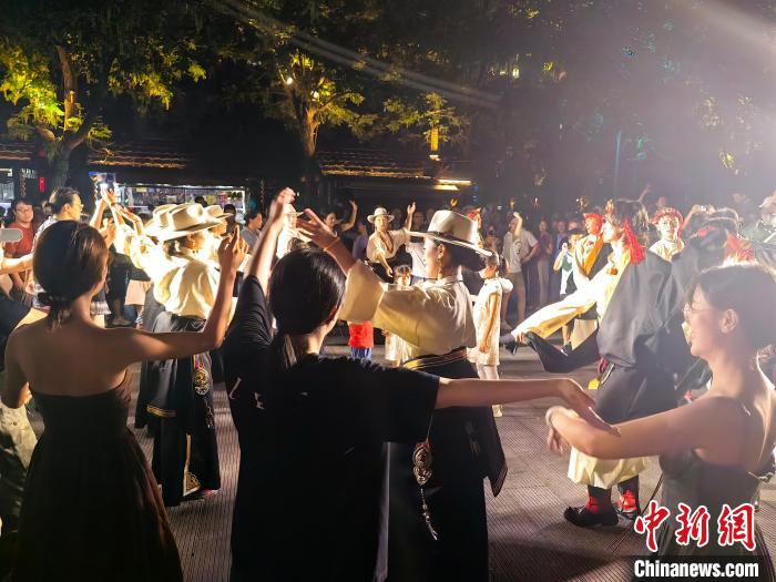 值得一提的是,為了讓觀眾更好地感受橫斷秘境的特色,開幕式當晚,甘孜州木雅文化藝術博覽中心的演員們繼續(xù)在中國刀剪劍博物館、中國傘博物館的運河入口處,進行鍋莊舞表演,帶領民眾共同感受鍋莊舞這一國家級非遺的魅力。