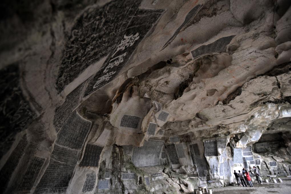 位于桂林市龍隱巖內的桂海碑林,現(xiàn)存有唐代至民國摩崖石刻210余件,并收藏和陳列有桂林歷代石刻精品拓片及歷代散碑、石雕。新華社記者 陸波岸 攝