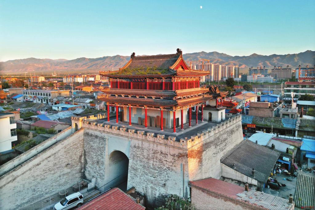 代州州城,趙武靈王胡服騎射置廣武縣,廣武,尚武擴張也。廣武城在今代縣城西15里古城村,秦漢魏晉南北朝廣武縣治。東漢建武九年(33年),因王莽篡漢后,匈奴不斷侵擾勾注以北,東漢光武帝劉秀暫棄陘北,南遷雁門郡郡治善無(王莽陰館)于太原郡廣武境內,在此筑城為郡治,稱上館城。建武二十六年(50年)驅走匈奴,恢復雁門郡舊土,郡民重歸本土。雁門郡郡治又從廣武上館城遷回陰館下館城。做了17年雁門郡郡城的代縣上館城,城和城名都保留下來。太原郡廣武縣治仍在廣武古城。東漢建安二十年(215年),析太原郡北部置新興郡,廣武縣劃歸雁門郡,仍治廣武古城。曹魏黃初二年(221年)因匈奴屢犯勾注山以北地帶,雁門郡治所由陰館遷于廣武城,從此改治“廣武”。晉懷帝永嘉四年(310年),劉琨徙馬邑、陰館、樓煩、繁峙、崞五縣于陘南,更立城邑,完全放棄了陘北之地。雁門郡遂完全進入陘南。北魏置肆州后,肆州雁門郡只剩了廣武、原平兩縣,郡治廣武古城。到北魏孝明帝(515年—528年)時,重建上館城,雁門郡郡治與廣武縣治皆遷于上館城,即今代縣城,廣武古城廢。北周肆州治從今忻州城遷于上館城中,隋文帝改肆州為代州,改廣武縣為雁門縣。代州領雁門、繁峙、崞、五臺四縣。明洪武六年,吉安侯陸亨、都指揮王臻以磚砌城。周圍八里一百八十五步,高三丈五尺,護城河池深二丈一尺,中有活水,四面故生蓮。洪武八年,復稱代州。門四,甕城各一,各建重樓、角樓四座,鋪舍五十,南無關,東、西、北關土城各一。景泰、成化中,添筑東北二關城。歷代皆有修葺。州城四門:東熙和,沐東陽熙合和融;南迎薰,迎南方香薰之風;西康阜,喜康莊物阜民豐;北鎮(zhèn)朔,鎮(zhèn)朔方州境安寧。