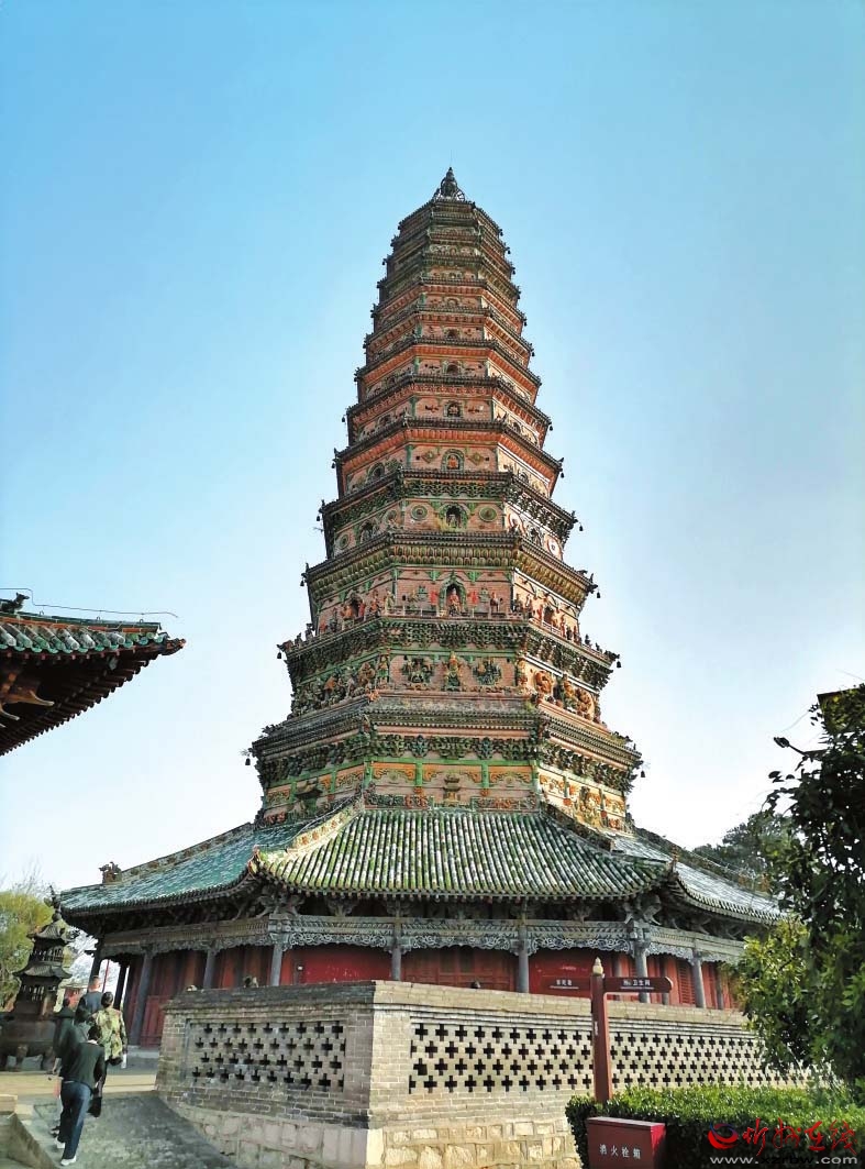 在洪洞縣,有一座舉世聞名的佛教古剎廣勝寺,“三絕一奇”令人驚嘆。一絕是飛虹琉璃塔,是廣勝寺標(biāo)志性建筑,被推為全國第一塔,塔身外部有七色琉璃構(gòu)件與裝飾圖形,每一層都有一組中心圖案,生動逼真,色彩艷麗,被認(rèn)證為“世界最高的多彩琉璃塔”。二絕是《趙城金藏》,是玄奘從天竺取回的梵文經(jīng)卷中譯善本,世界上僅此一部,被譽為稀世珍寶。三絕是元代壁畫。內(nèi)容以祈雨、行雨、酬神等生活場景為主,布局嚴(yán)謹(jǐn),造型生動,堪稱我國風(fēng)俗神話題材的壁畫杰作。一奇是左右扭古柏,有1300余年歷史,一東一西,像兩位護(hù)法將軍守衛(wèi)著大殿。兩株古柏,左邊的朝左扭,右邊的向右扭,甚為奇特。