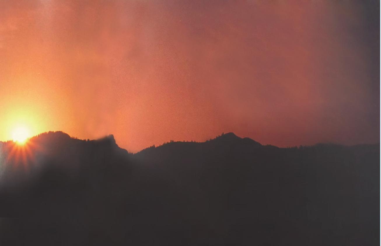 《五臺山志》載:“五更時,日出扶桑,可以望見十倍于車輪的紅輪之下,隱隱有水光閃爍,即東海也?!钡糜鎏鞖馇缋手眨詈檬蔷糜赀€晴之時,東臺日出這種景象分外漂亮。