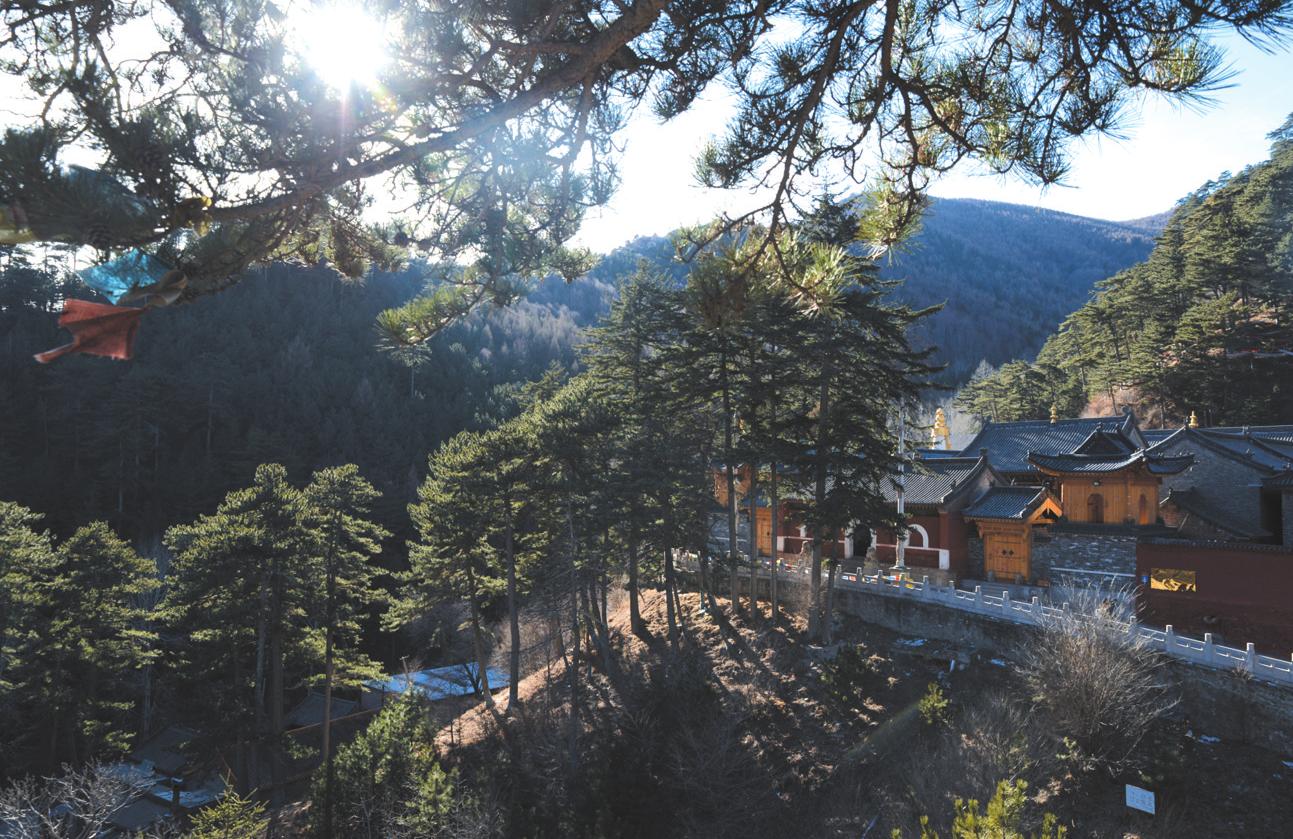 鎮(zhèn)海寺周圍森林茂密,主要樹種有油松、云杉、華北落葉松、青楊、白樺等,但最引人注目的還是分布在寺院周圍、面積達300多畝的油松林。這些古松高大挺直、姿態(tài)雄健,樹齡大約在300——400年之間,是五臺山最大的兩片古油松林之一(另一片為金崗庫后的油松林),也是五百里五臺山最享有盛譽的景觀林。