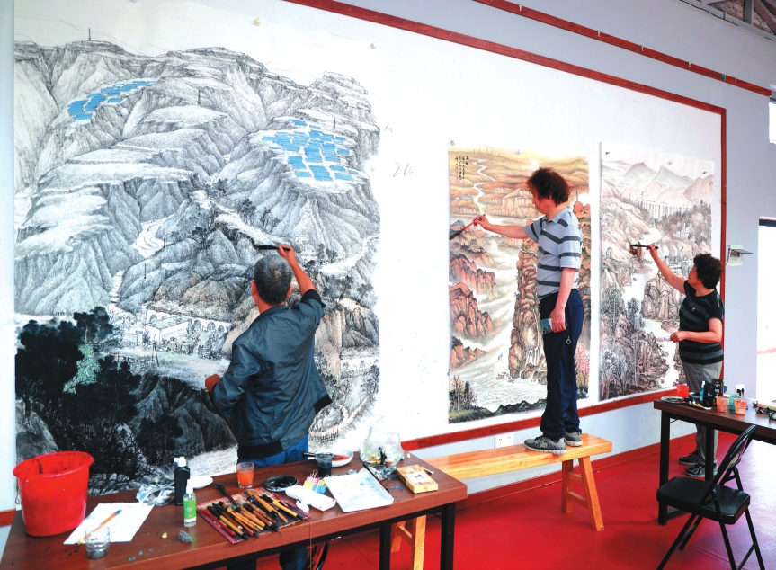 中國(guó)青綠山水畫院秘書長(zhǎng)金石已是二度造訪:“每次感受都不同,黃土高原總能滋養(yǎng)心靈,激發(fā)無(wú)盡創(chuàng)作靈感?!贝诵兴で閾]毫,創(chuàng)作了《雪域高原》《春曉趙家溝》《翠綠趙家溝》三幅作品,并已將“金秋趙家溝”主題納入明年的創(chuàng)作藍(lán)圖。
