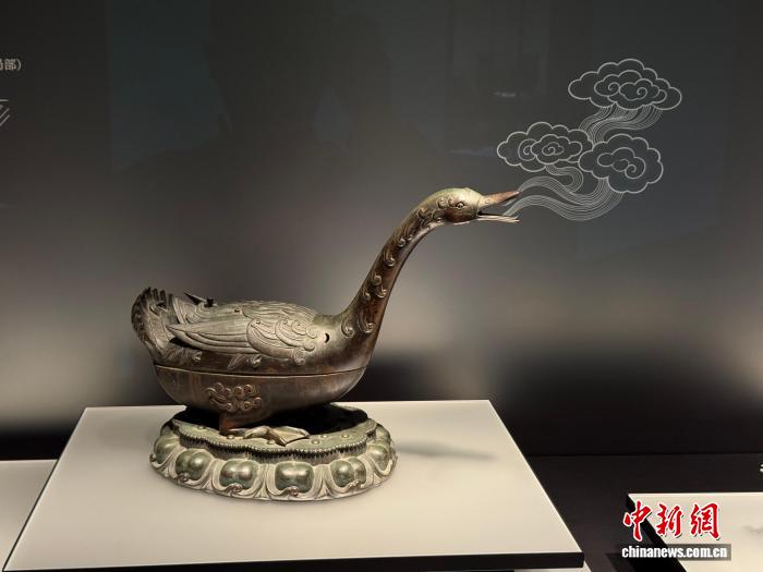 11月11日,大都會藝術(shù)博物館藏明代雁形銅熏爐在上海博物館東館展出。 中新社記者 康玉湛 攝
