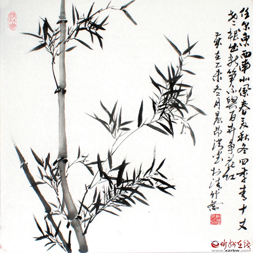 邢晨昂好竹,表述的不是生活,而是一種心境。他的心是透明而簡(jiǎn)單的,與他相處,踏實(shí)而舒服。畫竹,不需有太多的想法,就是很舒服地欣賞。因?yàn)槟枪P下的墨竹如同自然生長(zhǎng)一樣,毫不做作,毫不矯情。疏影橫斜、悠然瀟灑,這是一種心態(tài)。