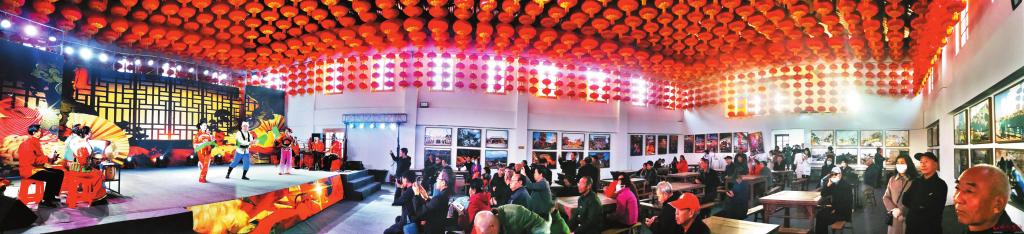 忻州古城職工俱樂部根據(jù)轄區(qū)群眾的工作和休息時間情況,科學(xué)合理安排各項活動,極大地豐富了群眾的業(yè)余文化生活,受到市民和游客的歡迎。圖為市民和游客在觀看忻藝歌舞團帶來的民歌二人臺專場演出。(張存良 攝)
