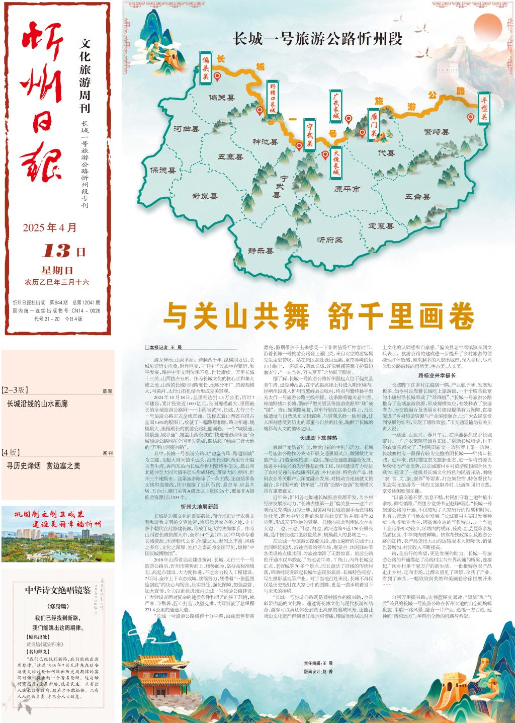山河萬里振興路,宏偉藍(lán)圖變通途。“顏值”和“氣質(zhì)”兼具的長城一號旅游公路在忻州大地的山巒間蜿蜒盤旋,串聯(lián)一路風(fēng)景,融合一片產(chǎn)業(yè),造福一方百姓,延伸向“詩和遠(yuǎn)方”,孕育出全新的機(jī)遇與希望。(記者 王 晟)
