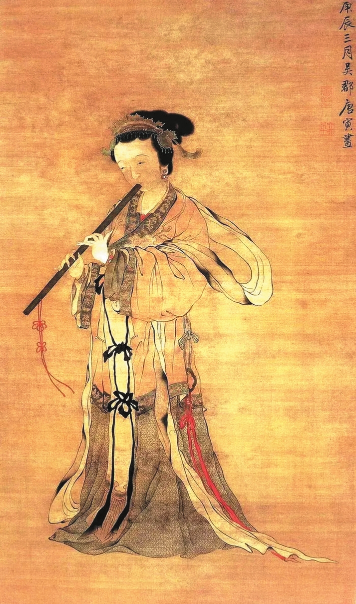 唐代稱笛聲為“龍吟”,稱簫為“鳳簫”。以龍鳳稱笛簫,可見這兩件竹樂器在眾多樂器中的地位。李白詩云:“笛奏龍吟水,簫鳴鳳下空。”其實,簫和笛在吹奏方式上明顯不同,笛子要橫著吹,簫要豎著吹,而且簫音量較小,音色輕柔,比起笛子的音色,更有一種幽怨之意。相傳在當年的垓下之圍中,張良就用簫勾起了楚軍將士的思鄉(xiāng)之情。篪也是一種需要橫吹的樂器,但是開口在管的中間,吹奏時持管的方式有點像在舉杠鈴。