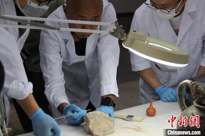 5月20日,河南洛陽,龍門石窟研究院的“文物醫(yī)生”對文物進行修復。 中新社記者 闞力 攝