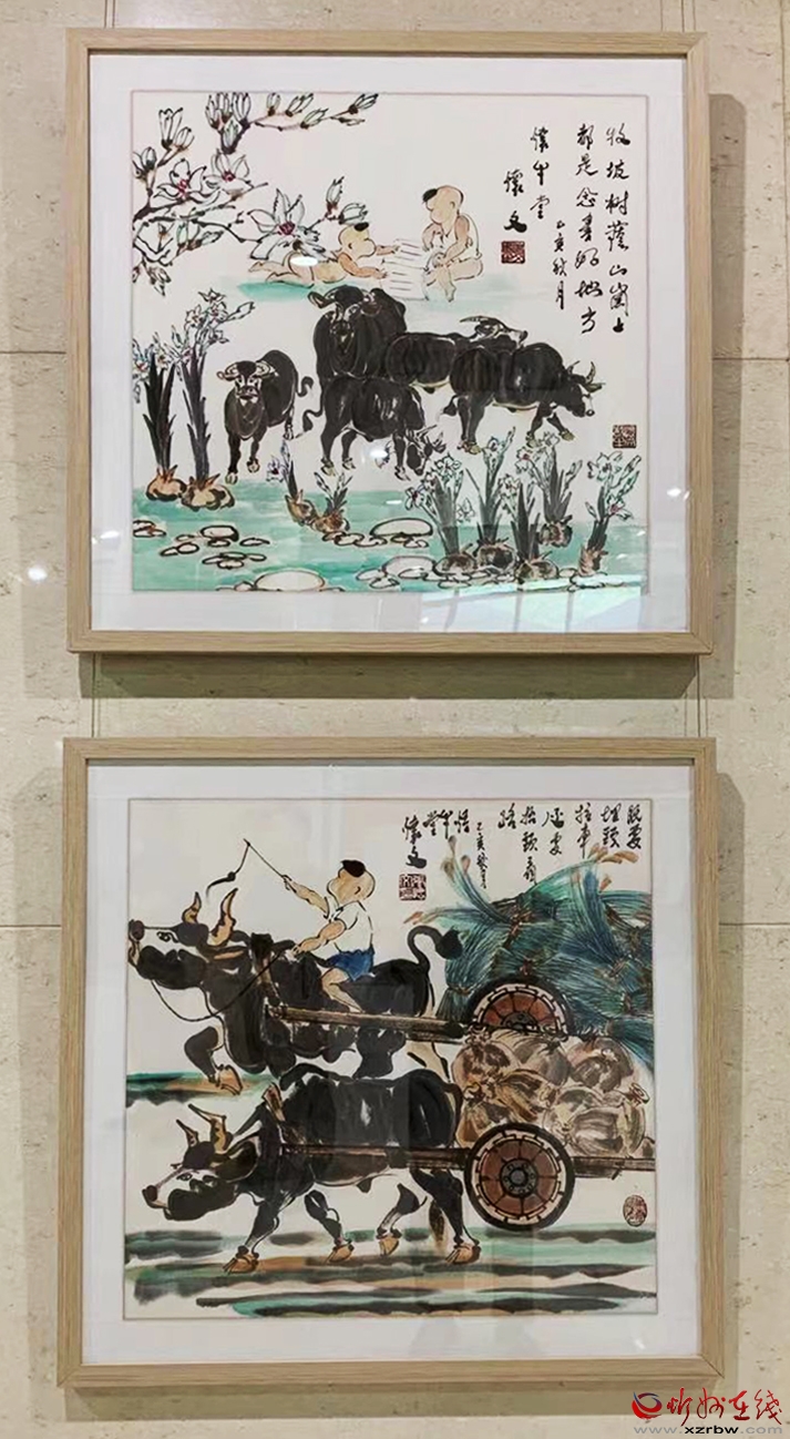 上千平方米的展廳內(nèi),299幅尺幅不同、姿態(tài)各異的以牛為表現(xiàn)主題的國(guó)畫作品,組成了一個(gè)牛的世界,多角度展現(xiàn)了牛的精神。