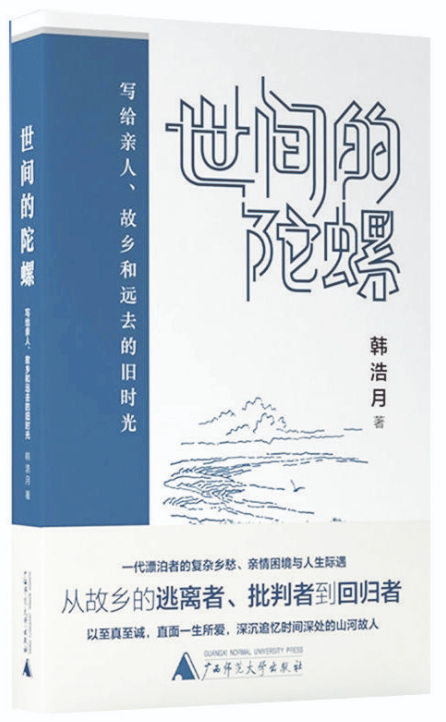 人不管走得多遠(yuǎn),最終都要和故鄉(xiāng)的人、故鄉(xiāng)的山河、故鄉(xiāng)的那段歲月握手言和。在《世間的陀螺》這本散文集里,韓浩月把故人、故鄉(xiāng)、故事一一請(qǐng)進(jìn)書中、銘刻心間,讓其成為自己生命中的光亮,照耀未來的道路。如他自己所說的,“從一個(gè)出走者和背叛者變成一個(gè)回歸者”,回歸并不單指肉體層面,把故鄉(xiāng)一直裝在心里的人便是永恒的回歸者。無論親人是生是死,無論故鄉(xiāng)是新是舊,一直對(duì)其不離不棄的人,才是故鄉(xiāng)大地懷抱里永遠(yuǎn)長(zhǎng)不大的孩子——想哭就哭,想笑就笑,想跳就跳,想回來就回來。(張家鴻