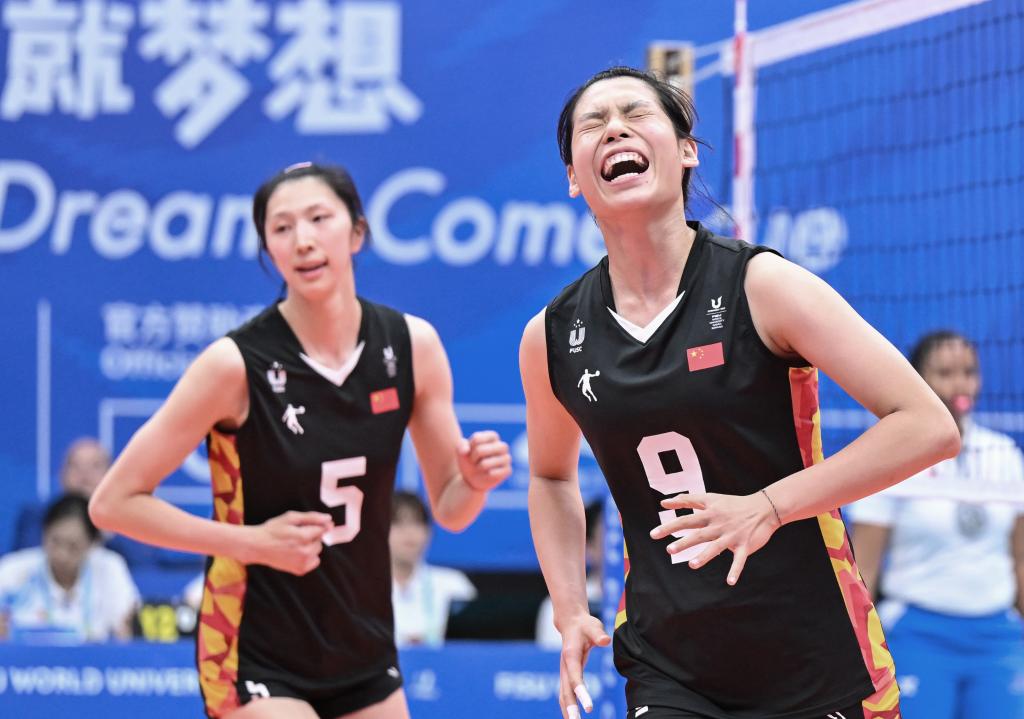 在成都大運會男排小組賽C組的比賽中,中國隊以25:20、25:18和25:9擊敗烏克蘭隊,贏得兩連勝的同時提前晉級八強。