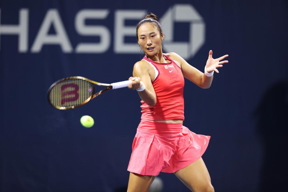 8月29日,鄭欽文在比賽中回球。新華社記者 劉杰 攝