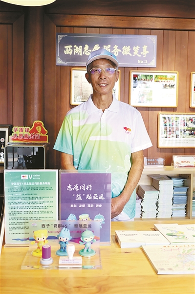 “不培訓(xùn)不上崗,不合格不上崗”,這是亞運(yùn)城市志愿者上崗的“硬要求”,也是景區(qū)志愿者做好服務(wù)的“金名片”。年過七旬的志愿者施志平,已經(jīng)連續(xù)在西湖邊服務(wù)了11個(gè)年頭?!白罱南词珠g怎么走”“音樂噴泉在哪里看”“西湖游船哪里可以坐”,這些問題他一天不知要回答多少遍,“馬上開亞運(yùn)會(huì)了,會(huì)有更多人來到杭州、來到西湖,我也希望能夠?yàn)楹贾荻嘧鲂┴暙I(xiàn)。”施志平說,“最近我們也從年輕人身上學(xué)到了很多技能,尤其是英語,希望到時(shí)候能為大家提供更周到的服務(wù)。”