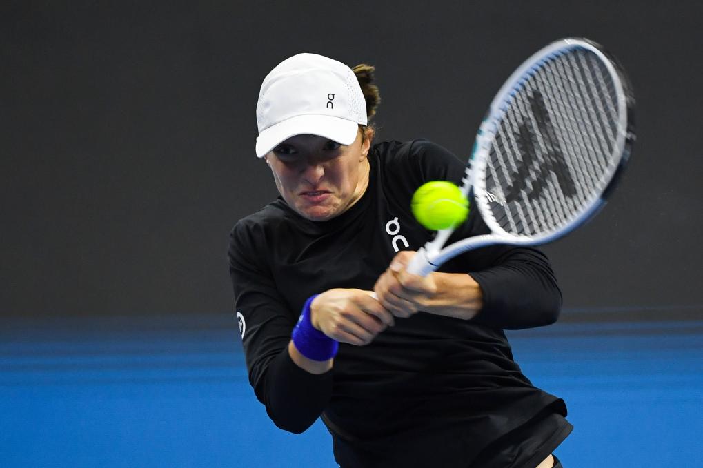 10月8日,斯維亞特克在2023中國網(wǎng)球公開賽決賽中回球。新華社記者 鞠煥宗 攝