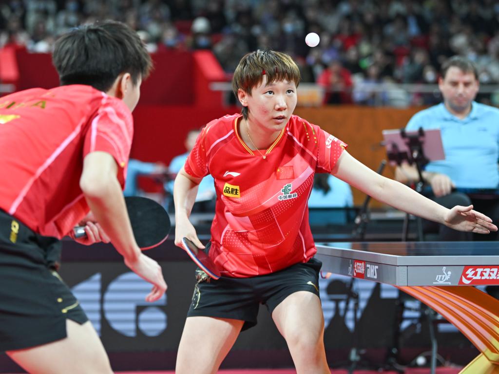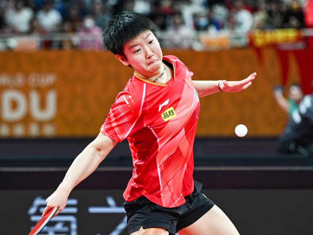 12月4日,中國隊選手孫穎莎在女單比賽中回球。新華社記者 王曦 攝