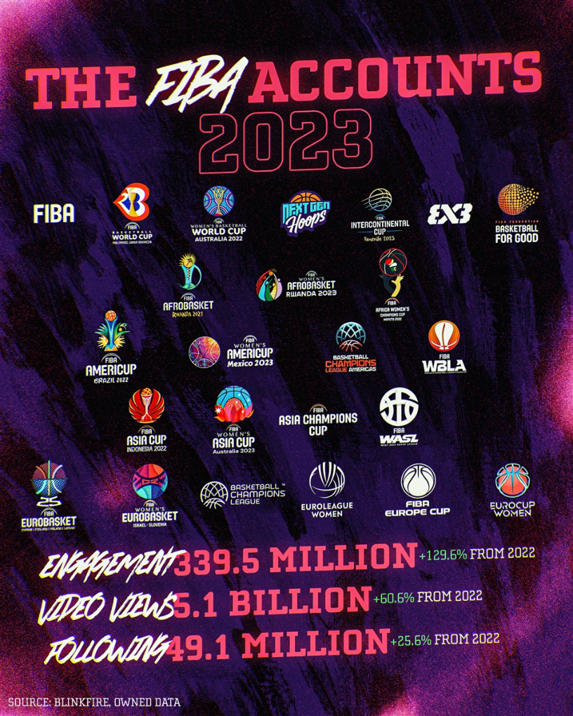 國(guó)際籃聯(lián)2023年社交媒體數(shù)據(jù)報(bào)告。圖片來(lái)源自國(guó)際籃聯(lián)官方網(wǎng)站