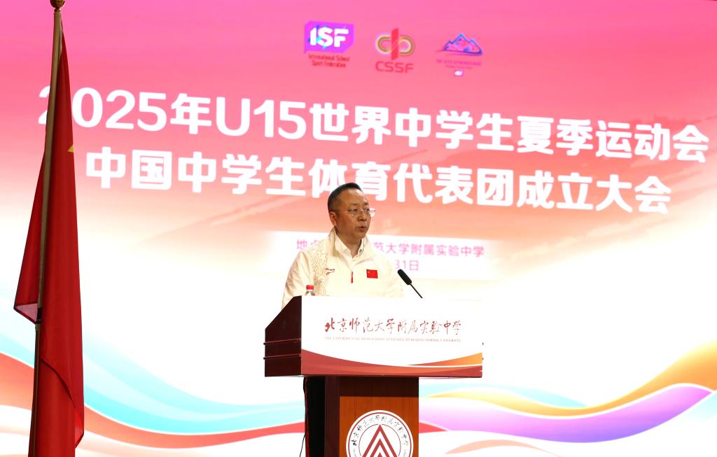 新華社北京3月31日電(記者韋驊)2025年U15世界中學(xué)生夏季運動會中國中學(xué)生體育代表團(tuán)成立大會31日在北京師范大學(xué)附屬實驗中學(xué)召開,中國代表團(tuán)將派出100名運動員赴塞爾維亞茲拉蒂博爾參賽。