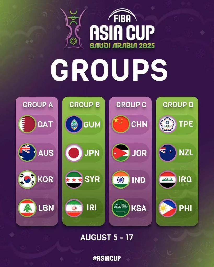 本屆FIBA亞洲杯將于8月5日至17日在沙特阿拉伯吉達(dá)舉行。小組賽階段,16支參賽球隊分為4個小組,小組頭名直接晉級八強(qiáng),獲得小組二、三名的球隊需要進(jìn)行交叉淘汰賽,取勝的一方入圍四分之一決賽,隨后的比賽采用單場淘汰制。