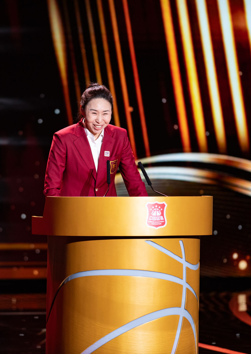 3月23日,中國籃球名人堂入堂人物“杰出女運動員”苗立杰在入堂儀式上演講。新華社記者 陳鐘昊 攝