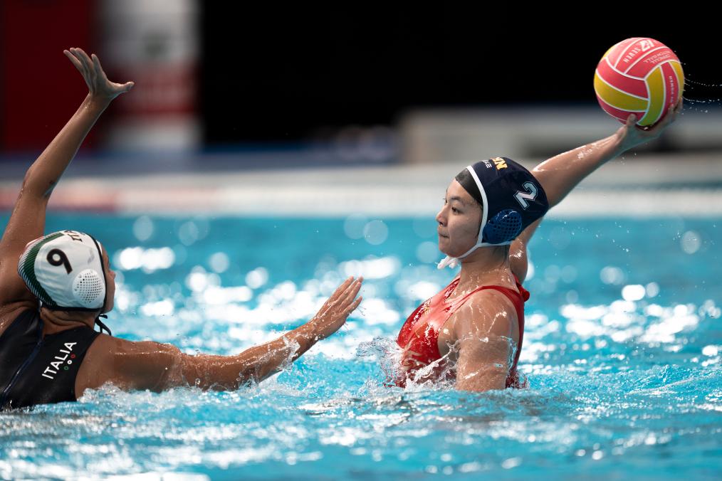 中國(guó)隊(duì)在交叉賽中遭遇世界排名第七的意大利隊(duì),雙方一開(kāi)場(chǎng)就開(kāi)始在水中“肉搏”,比拼防守。第一節(jié)中國(guó)隊(duì)以0:2落后。次節(jié)中國(guó)隊(duì)逐漸找到進(jìn)攻節(jié)奏,由王詩(shī)蘊(yùn)率先破門(mén),此后雙方你來(lái)我往,交替得分。張育綿、周尚、張玘鑠的進(jìn)球幫助中國(guó)隊(duì)緊咬比分,半場(chǎng)結(jié)束中國(guó)隊(duì)5:6落后。