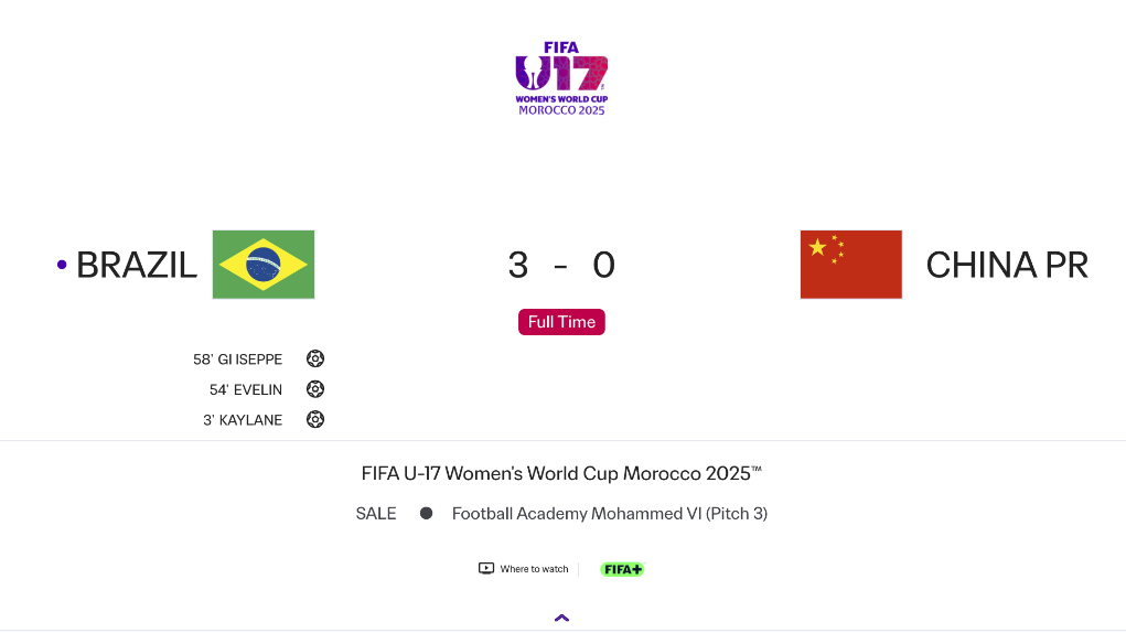 | U17女足世界杯|中國隊不敵巴西隊止步16強 |