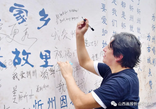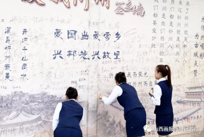“走遍千山萬水,還是忻州最美”“來了忻州就是忻州人,來過忻州就是忻州人”“愛國當(dāng)愛家鄉(xiāng) 興邦先興故里”……墻上的一句句充滿情感、生動質(zhì)樸的語言,寫滿了對祖國、對家鄉(xiāng)的濃濃熱愛,引起了過往游客路人的深深共鳴。游人們有的在這些文字旁簽名,有的合影留念,有的文思泉涌寫下一條條深情寄語,盡情表達(dá)著對忻州發(fā)展的美好祝福和共建全國文明城市的堅定信心。
