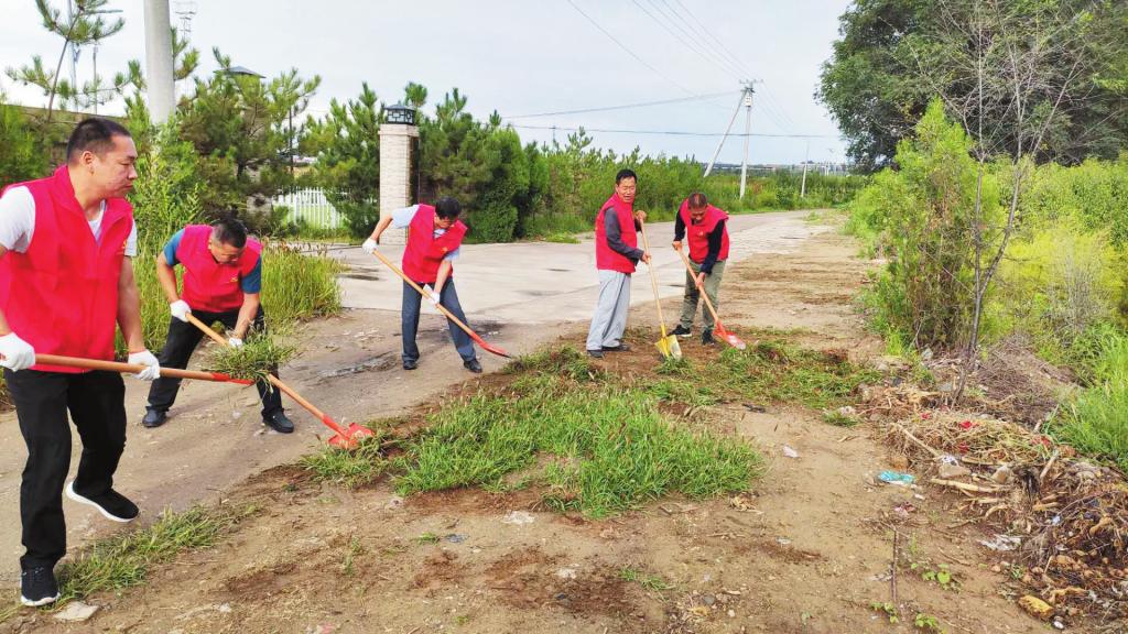活動中,氣象志愿者們身著紅馬甲,相互配合,有的除雜草,有的拾垃圾,對所轄社區(qū)內(nèi)衛(wèi)生死角進行了徹底清理。 段永升 攝