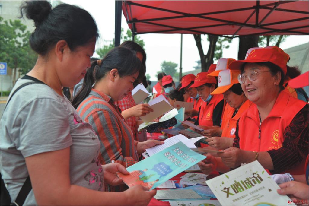 志愿者為過往群眾發(fā)放創(chuàng)文宣傳資料 本報(bào)通訊員 攝
