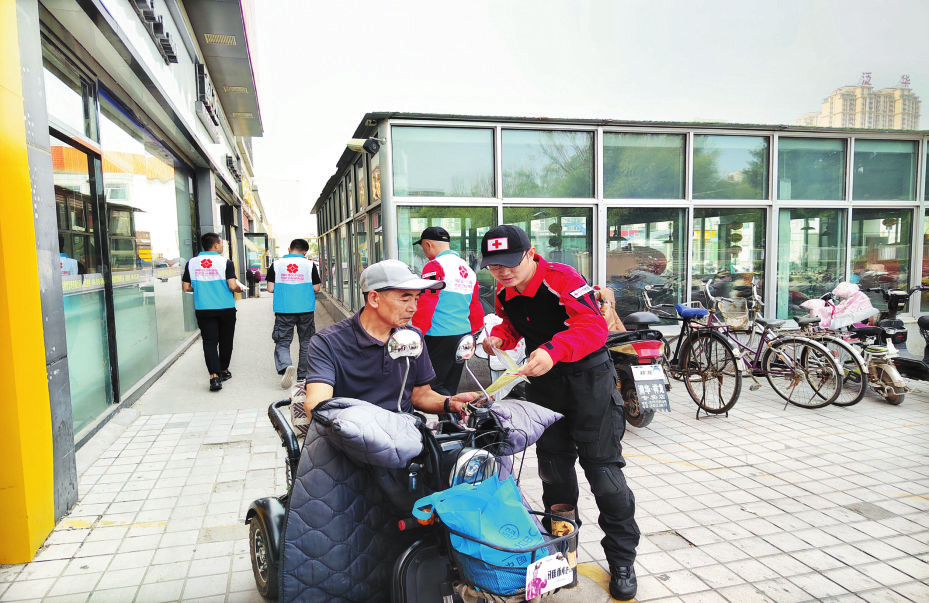 據(jù)了解,每年9月的第三個星期六是“世界骨髓捐獻(xiàn)者日”?;顒赢?dāng)天,市紅十字會工作人員、市紅十字應(yīng)急救援隊隊員以及志愿者,向市民普及日常應(yīng)急救護(hù)知識,介紹應(yīng)急救護(hù)基本技能。同時,向市民發(fā)放健康教育宣傳資料,宣傳無償獻(xiàn)血、造血干細(xì)胞捐獻(xiàn)等相關(guān)知識,呼吁更多適齡健康公民奉獻(xiàn)愛心,挽救更多的血液病患者。圖為志愿者在活動現(xiàn)場向市民發(fā)放健康教育宣傳資料。(記者張林泉 攝影報道)