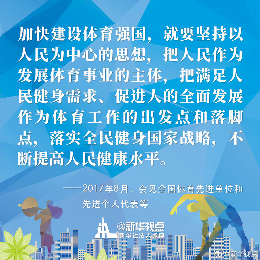 今年8月8日是我國第12個(gè)“全民健身日”。黨的十八大以來,以習(xí)近平同志為核心的黨中央高度重視關(guān)心體育工作,謀劃、推動(dòng)體育事業(yè)改革發(fā)展,將全民健身上升為國家戰(zhàn)略,推動(dòng)全民健身和全民健康深度融合。今天,一起來重溫習(xí)近平總書記關(guān)于推進(jìn)全民健身、體育強(qiáng)國事業(yè)的金句?