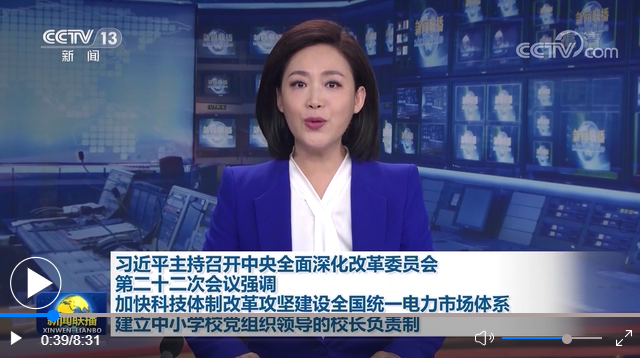 加快科技體制改革攻堅建設(shè)全國統(tǒng)一電力市場體系 建立中小學(xué)校黨組織領(lǐng)導(dǎo)的校長負(fù)責(zé)制