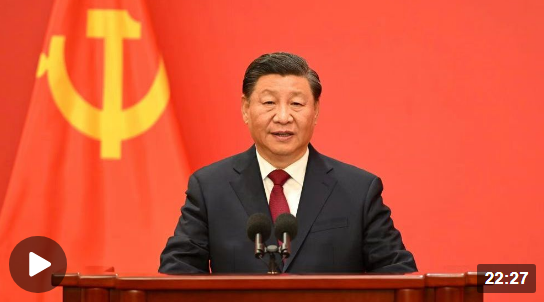 在中國共產(chǎn)黨第二十屆中央委員會第一次全體會議上當(dāng)選的中共中央總書記習(xí)近平和中共中央政治局常委李強、趙樂際、王滬寧、蔡奇、丁薛祥、李希,23日中午在人民大會堂同采訪中共二十大的中外記者見面。習(xí)近平發(fā)表重要講話。