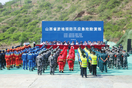 省水利廳和運(yùn)城市聯(lián)合開展淤地壩防汛應(yīng)急搶險(xiǎn)演練。本報(bào)通訊員攝