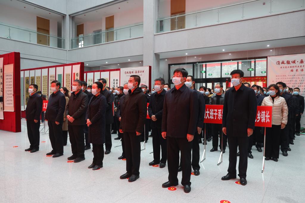 11月17日上午,忻州市紀(jì)委監(jiān)委主辦的“清風(fēng)雅頌·廉潔忻州”書法美術(shù)攝影作品展岢嵐縣專場(chǎng)在岢嵐縣總工會(huì)新樓一樓大廳舉行開展儀式??h四大班子領(lǐng)導(dǎo)和其他縣處級(jí)領(lǐng)導(dǎo)、各鄉(xiāng)鎮(zhèn)、縣直各單位主要負(fù)責(zé)同志共計(jì)150余人參加了開展儀式。