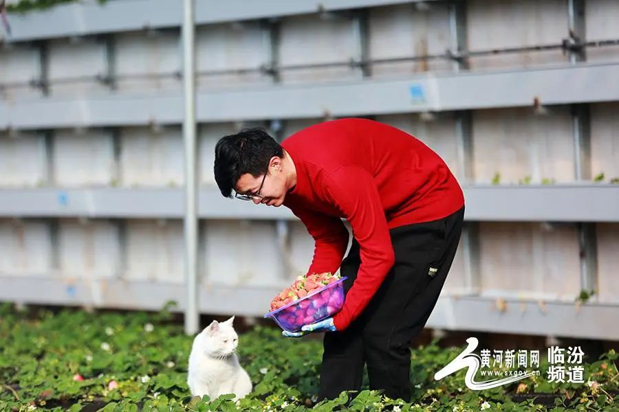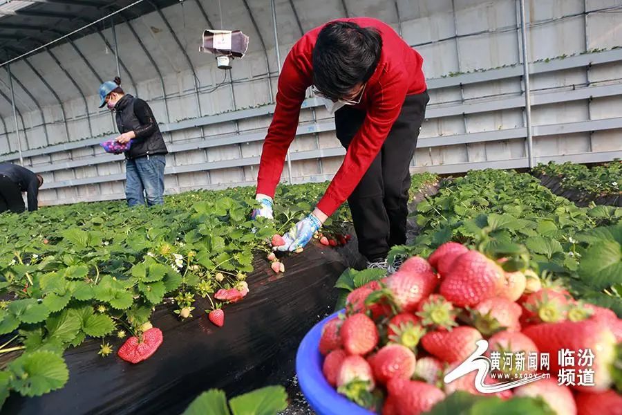日前,山西省臨汾市堯都區(qū)北練李村果中果采摘園公司,果農(nóng)采摘草莓準備銷售。