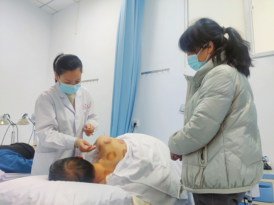 晉城市康復(fù)醫(yī)院中醫(yī)針灸四科主任、中醫(yī)醫(yī)師張潔在為患者施針治療。山西日?qǐng)?bào)記者王天曉攝