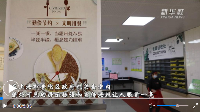 “點(diǎn)菜點(diǎn)少、不夠再添”“光盤行動(dòng)、從我做起”“厲行節(jié)約、反對(duì)浪費(fèi)”……在上海市普陀區(qū)政府機(jī)關(guān)食堂內(nèi),隨處可見的提示標(biāo)語和宣傳海報(bào)讓人眼前一亮。