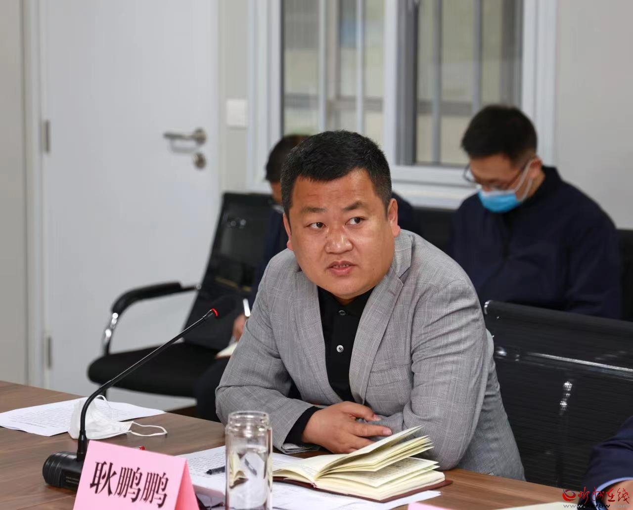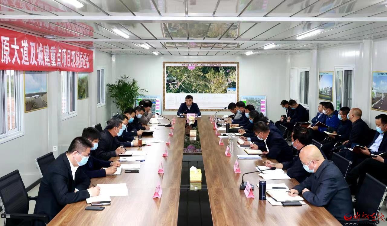 推進會現場。張存良 攝 5月7日,市委副書記、市長李建國實地察看東環(huán)路南延、太忻大道工程進展,在太忻大道建設總指揮部聽取忻原大道、城東片區(qū)新建道路管網工程、城區(qū)智慧停車位建設項目、中華長城博物館(園)和今年擬建改建道路等城建重點工程進展情況匯報,現場研究協(xié)調解決項目推進中存在的困難問題。副市長耿鵬鵬一同察看并主持匯報推進會,市政府秘書長張艮生和市直相關部門、工程施工單位負責人等參加。