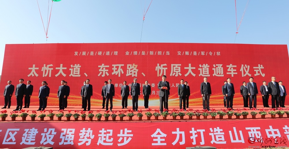 9月30日,我市舉行太忻大道、東環(huán)路、忻原大道通車儀式,市委書記朱曉東出席儀式并宣布太忻大道、東環(huán)路、忻原大道通車。市委副書記、市長李建國主持儀式。市委副書記、政法委書記郭奔勝,市人大常委會(huì)主任王珍,市政協(xié)主席范建民,山西建投集團(tuán)公司副董事長、總經(jīng)理徐忠和,市領(lǐng)導(dǎo)劉卓良、趙新年、張文偉、溫建軍、張敏、張宇光、史紅波、賈玲香、崔崢嶺、李碩、王建峰、張文斌,市政府秘書長張艮生,中鐵十七局集團(tuán)公司和中建三局集團(tuán)公司相關(guān)負(fù)責(zé)人出席。副市長耿鵬鵬介紹項(xiàng)目建設(shè)情況。