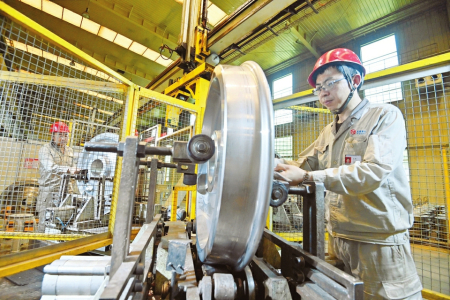 俯瞰窗外,流水線上一片片锃光瓦亮的車輪正快速產(chǎn)出,等待裝車發(fā)貨。控制室里,參觀者依然興趣盎然,仔細(xì)傾聽著、品味著“太重制造”自主創(chuàng)新的故事……
