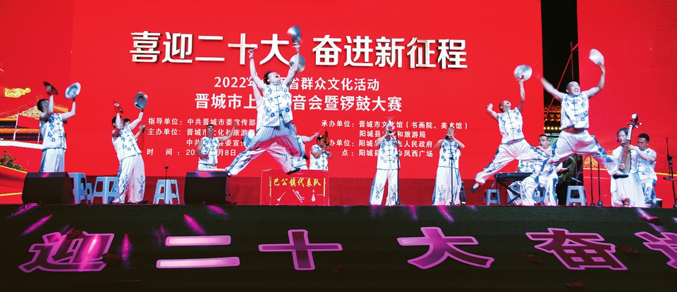 黨的二十大即將召開,三晉兒女歡欣鼓舞,充滿期待。晉城市上黨八音會在鑼鈸并舉、激越高昂的聲樂中,將黨的二十大召開的喜訊,傳遍澤州大地;運城市旗袍展演秀出紅紅火火的幸福日子及喜慶之情;臨汾市鑼鼓大賽奏響時代最強音,禮贊新時代……三晉大地載歌載舞,一系列主題文化活動都表達(dá)著對黨的二十大的翹首企盼,及對祖國更加繁榮昌盛的祝福之情。