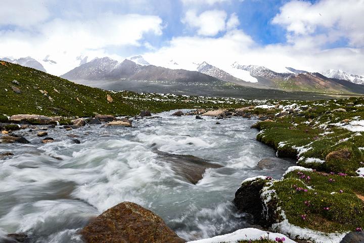 這是2022年7月21日在長江源地區(qū)拍攝的河道。新華社記者張龍 攝