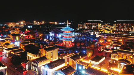 五臺山梵境里文旅綜合小鎮(zhèn)夜景。 山西晚報記者 馬立明 攝