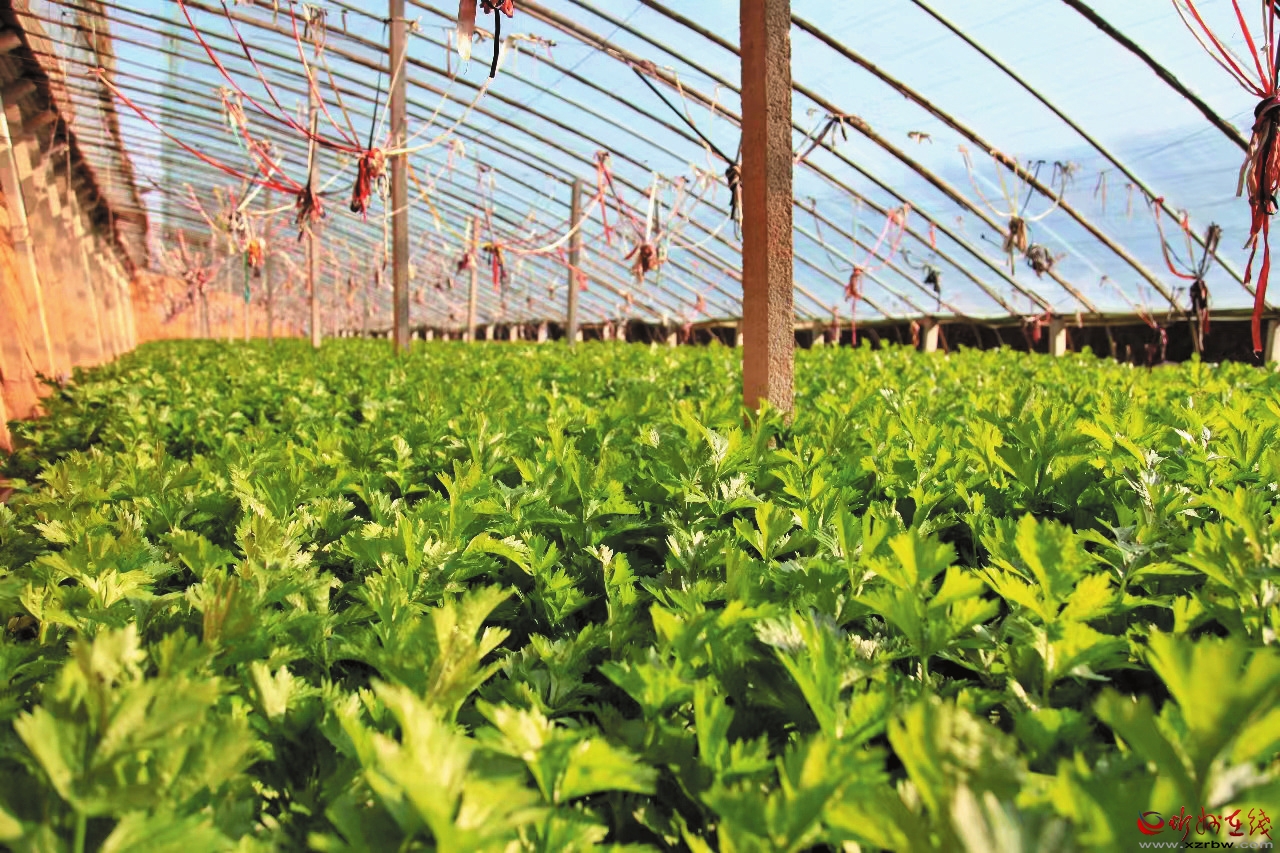 蔬菜大棚內西芹長勢喜人。 本報記者 申 健攝