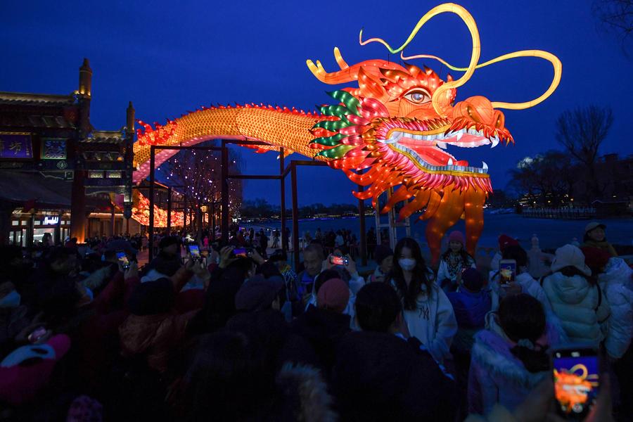 中國各地以龍為主題的展覽、游園會以及文創(chuàng)產(chǎn)品等紛紛“上新”,為中國文旅市場復(fù)蘇增添強勁動力。以北京為例,2月10日至2月13日,全市重點監(jiān)測的旅游景區(qū)(地區(qū))為174家,累計接待游客960.1萬人次,同比增長80.4%。