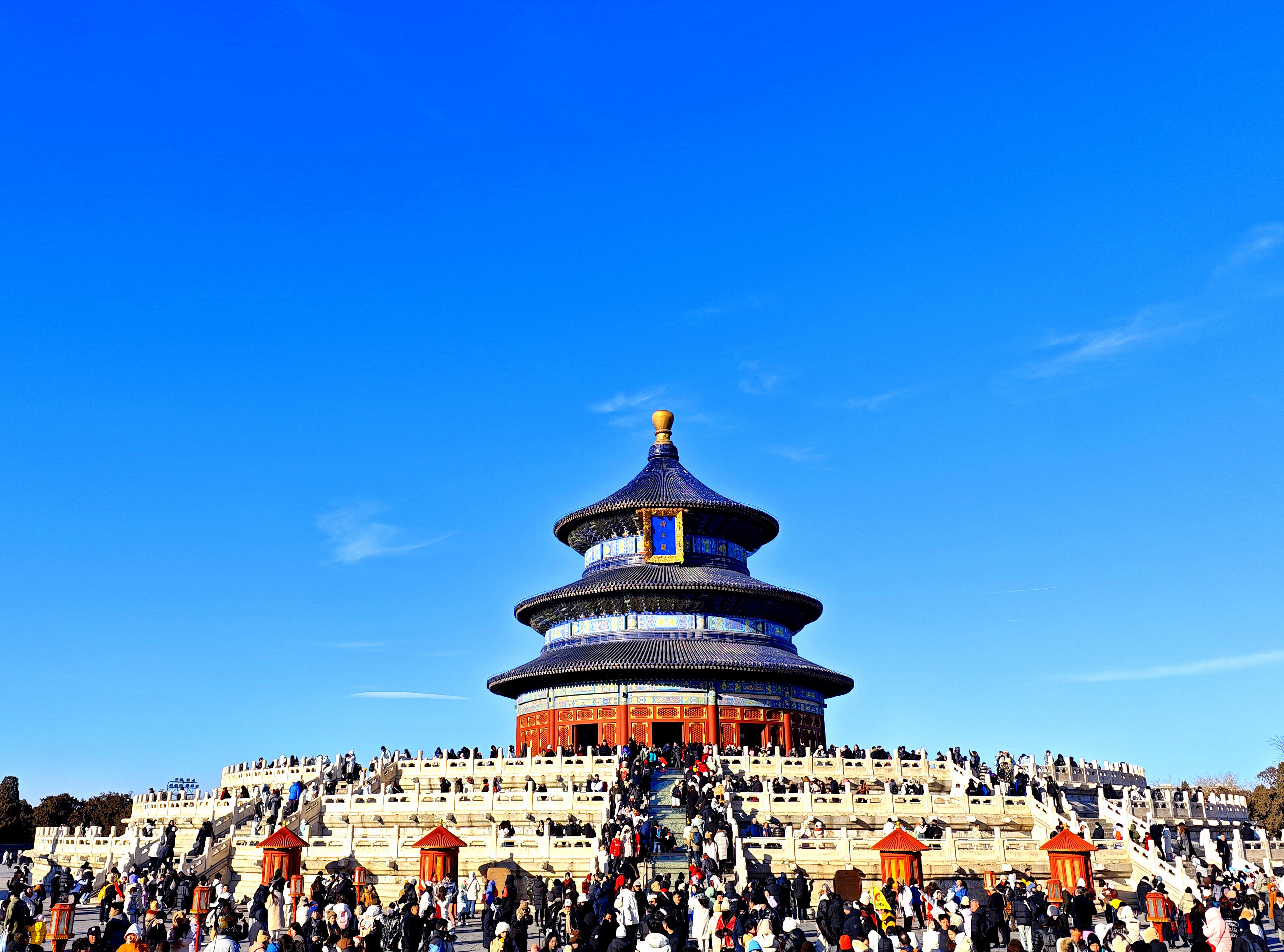 △2024年1月23日,北京持續(xù)晴好天氣,天壇公園藍天白云。最新數(shù)據(jù)顯示,北京PM2.5年均濃度連續(xù)三年穩(wěn)定達標,“北京藍”已成為常態(tài)。