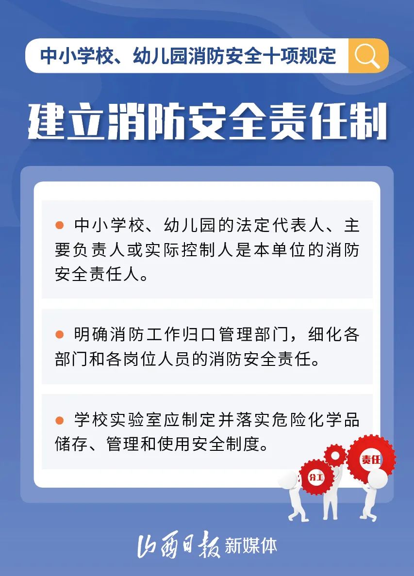 為加強中小學校、幼兒園消防安全管理,近日,教育部、國家消防救援局研究制定了《中小學校、幼兒園消防安全十項規(guī)定》,具體規(guī)定內容如下。