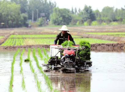 5月28日,太原市晉源區(qū)晉祠水稻插秧節(jié)在稻田公園舉行。活動現場,機器轟鳴、水波蕩漾,自動化插秧機勻速前進,水田里留下一簇簇新綠。卷褲腳、戴草帽、踏稻田、插秧苗、踩泥巴、捉魚蝦……一群群研學的孩子分批下田,感受手工插秧的樂趣,細嗅農耕勞作的氣息。田埂上圍觀群眾的加油聲、喝彩聲不絕于耳,現場一片熱火朝天。