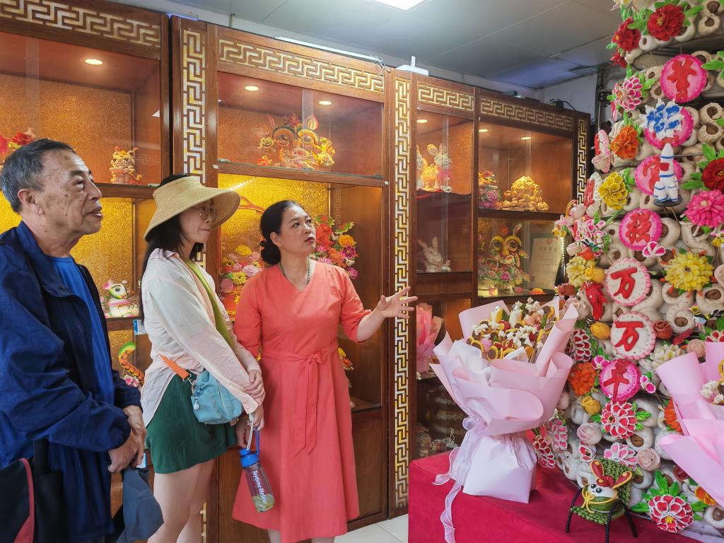 游客在韓城古城內(nèi)的花饃店參觀。新華社記者 孫正好 攝 如何在加強保護的同時又不失煙火氣?城內(nèi)百年老醋坊的主人樊克杰用“住著方便”來解釋背后的奧妙。自1924年起,他的祖輩就開始在韓城古城經(jīng)營醋坊。“政府不斷完善水電等基礎(chǔ)設(shè)施,還建了休閑廣場、口袋公園等?!狈私苷f,“老城不僅文化氣息濃厚,居住體驗也越來越好?!?/p> 出門吃碗羊肉饸饹,回來時再買筐菜,這是很多古城老居民的日常生活。非遺工坊、漢服體驗店等“潮玩”的興起,也讓他們感受到古城的新變化?!肮懦且谢盍?,還得引人來,這需要豐富的業(yè)態(tài)和體驗場景?!睏罱ㄥa說。 在史記文化街區(qū),游客可以通過大講堂、讀書會、情景劇等多種形式體驗《史記》的文化魅力。“我們設(shè)置了竹簡抄書體驗區(qū)、漢服體驗區(qū)等多種沉浸式場景。從2022年開業(yè)至今,有20多萬人來到這里感受《史記》的博大精深,其中以青少年居多?!笔酚涹w驗館工作人員張曉宇說。